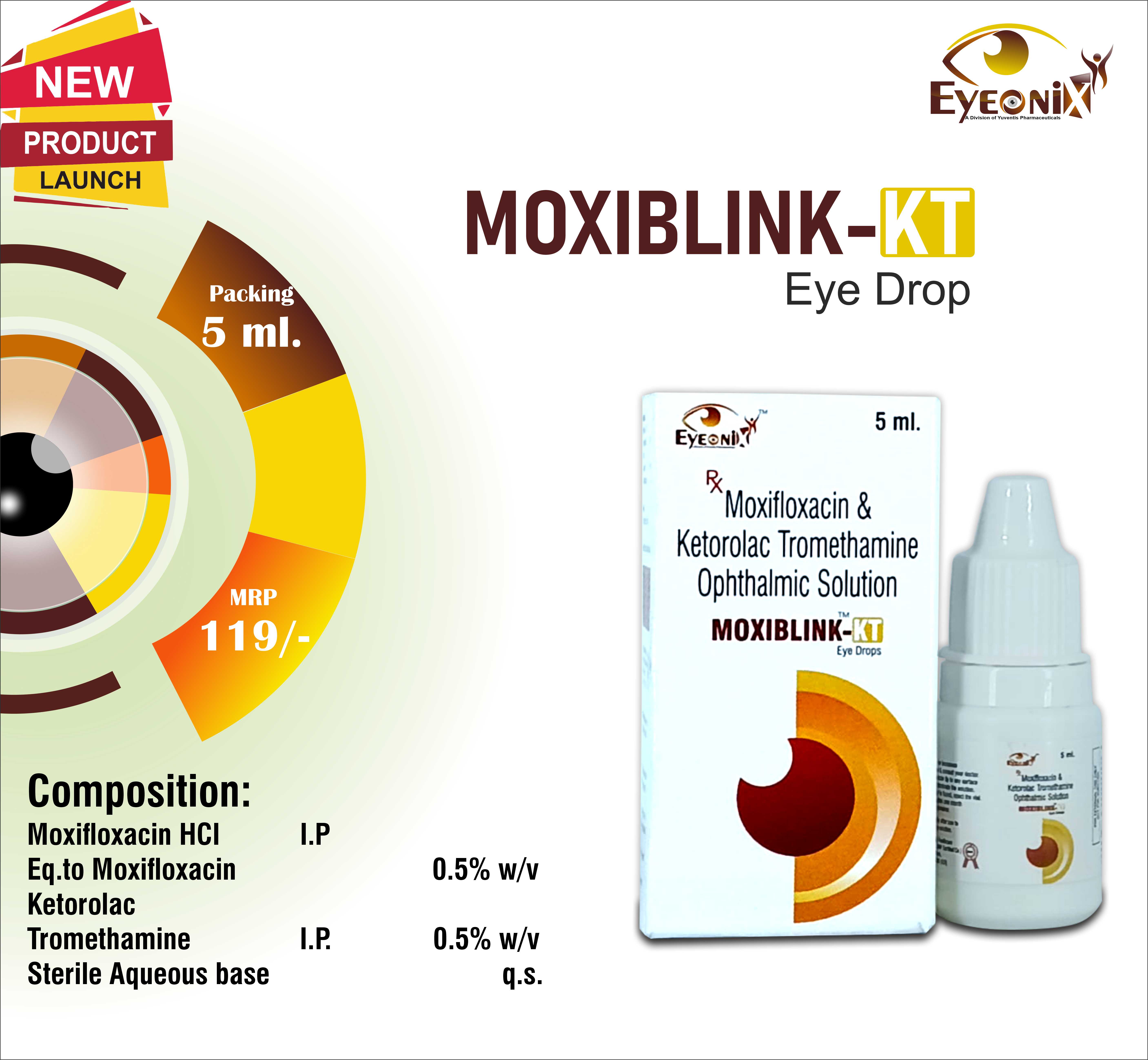 Moxifloxacin HCL I.P. 0.5% w/v + Ketorolac Tromethsmine I.P. 5% w/v Eye Drop