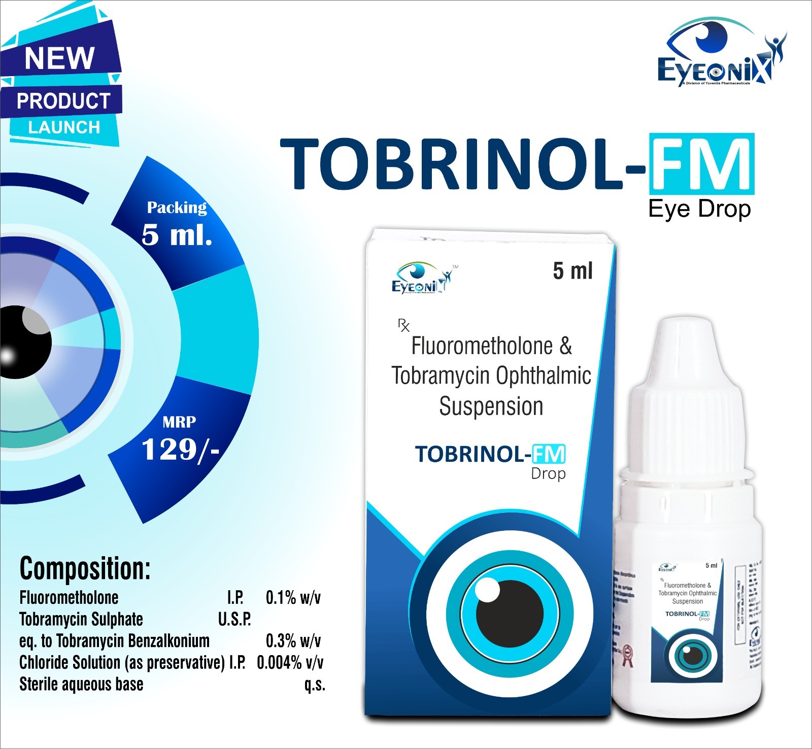 Fluorometholone 0.1% w/v, Tobramycin Sulphate 0.3% W/w