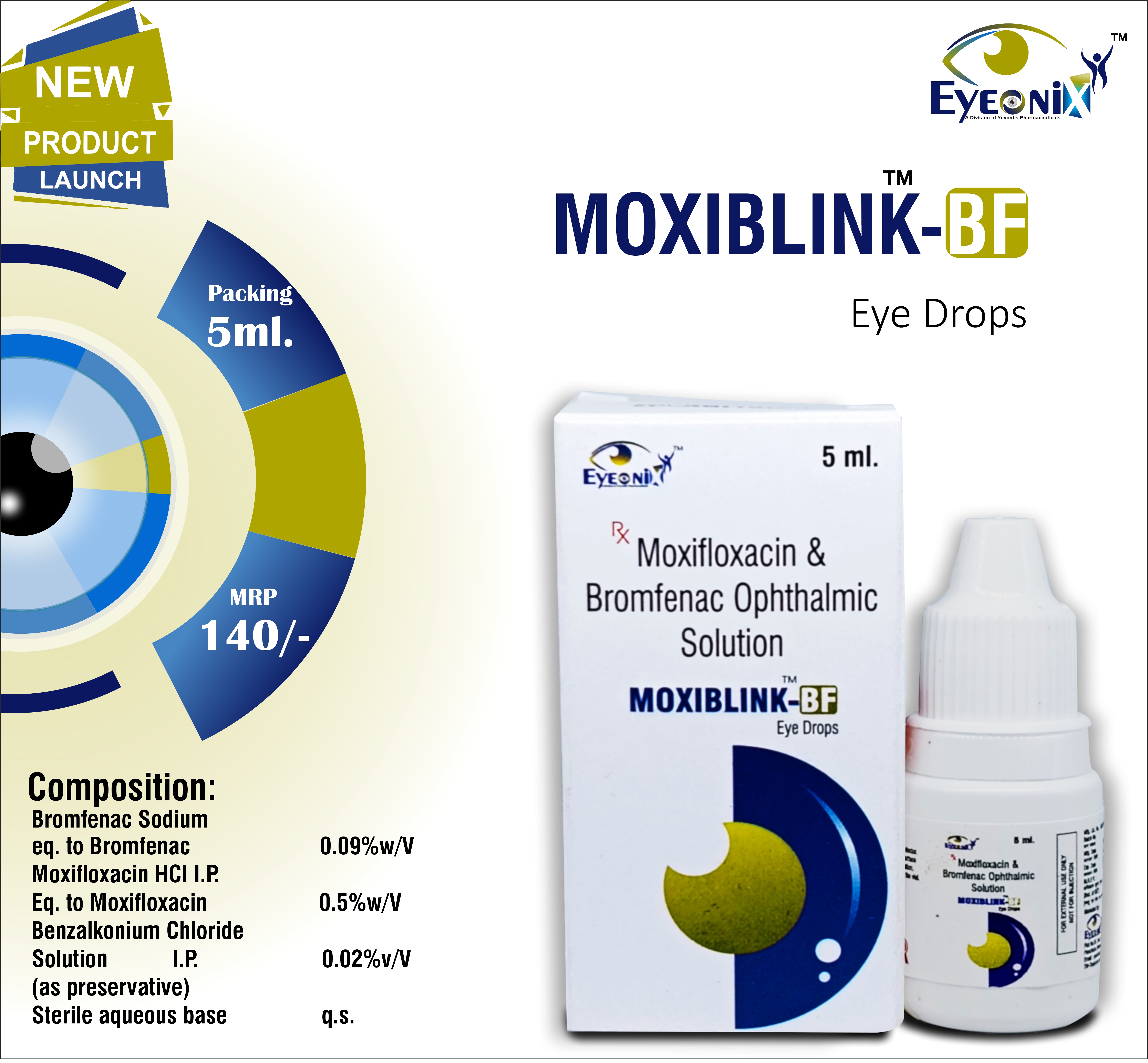 Moxifloxacin HCL I.P. 0.5% + Bromfenac Sodium 0.09% w/v Eye Drop